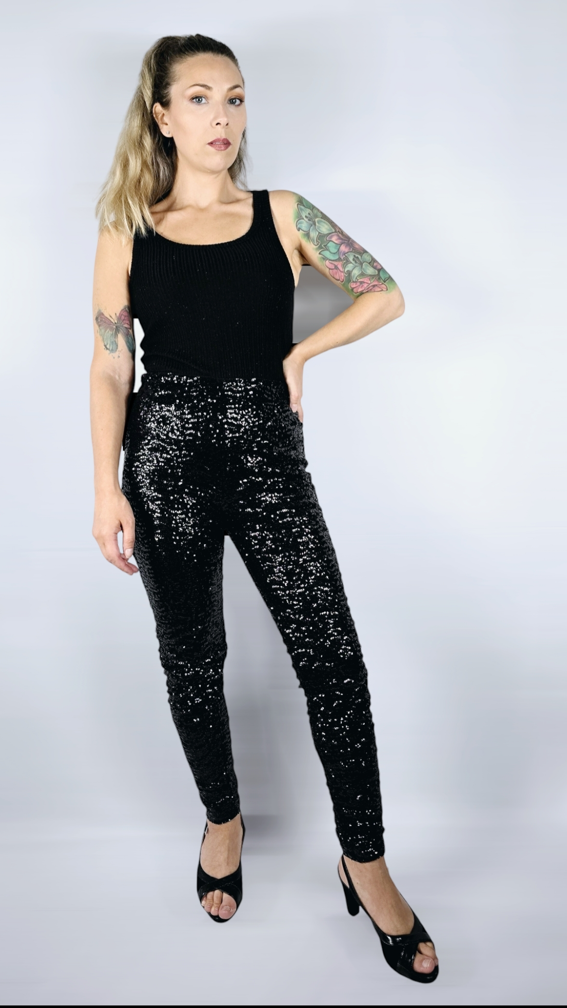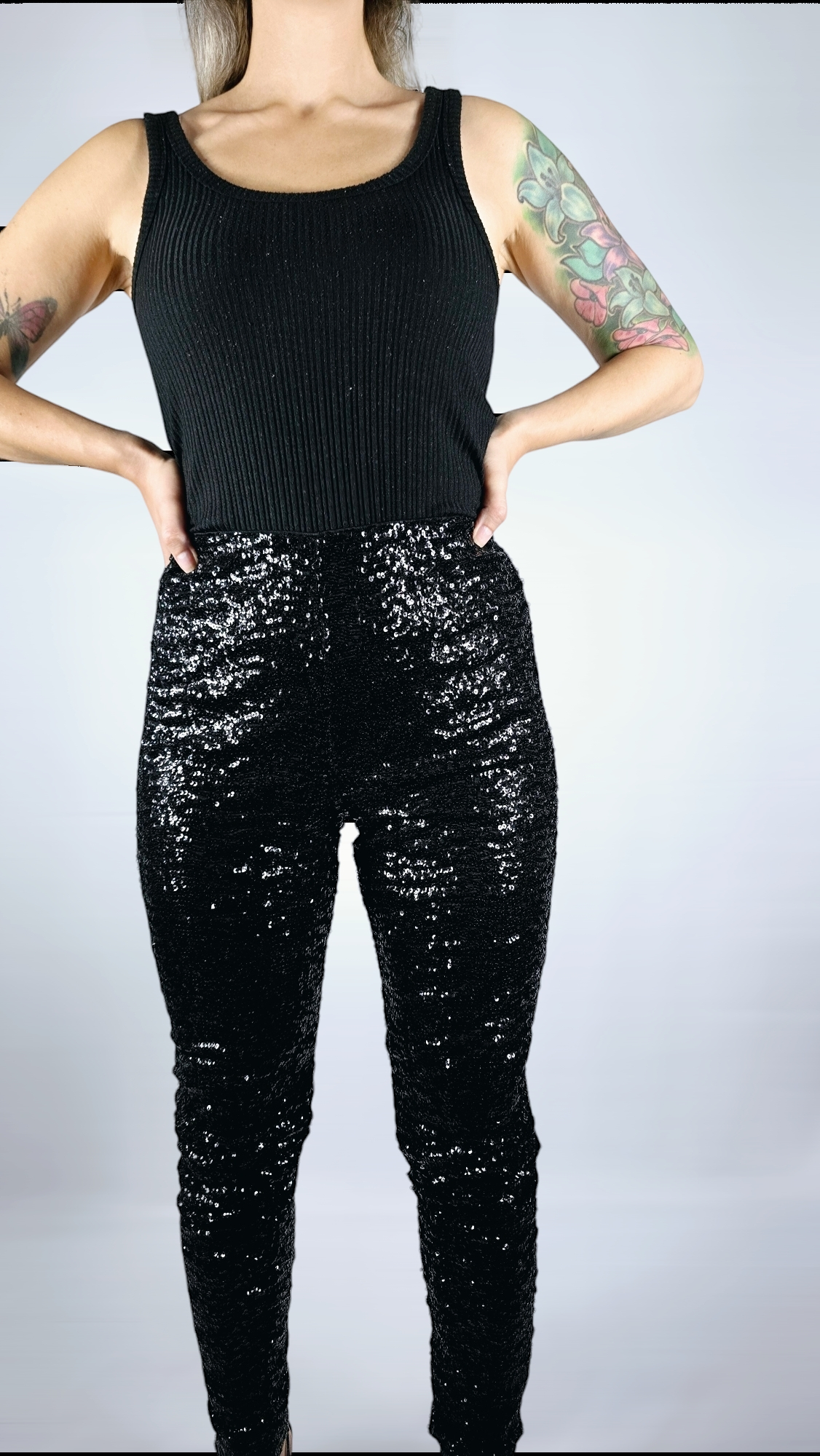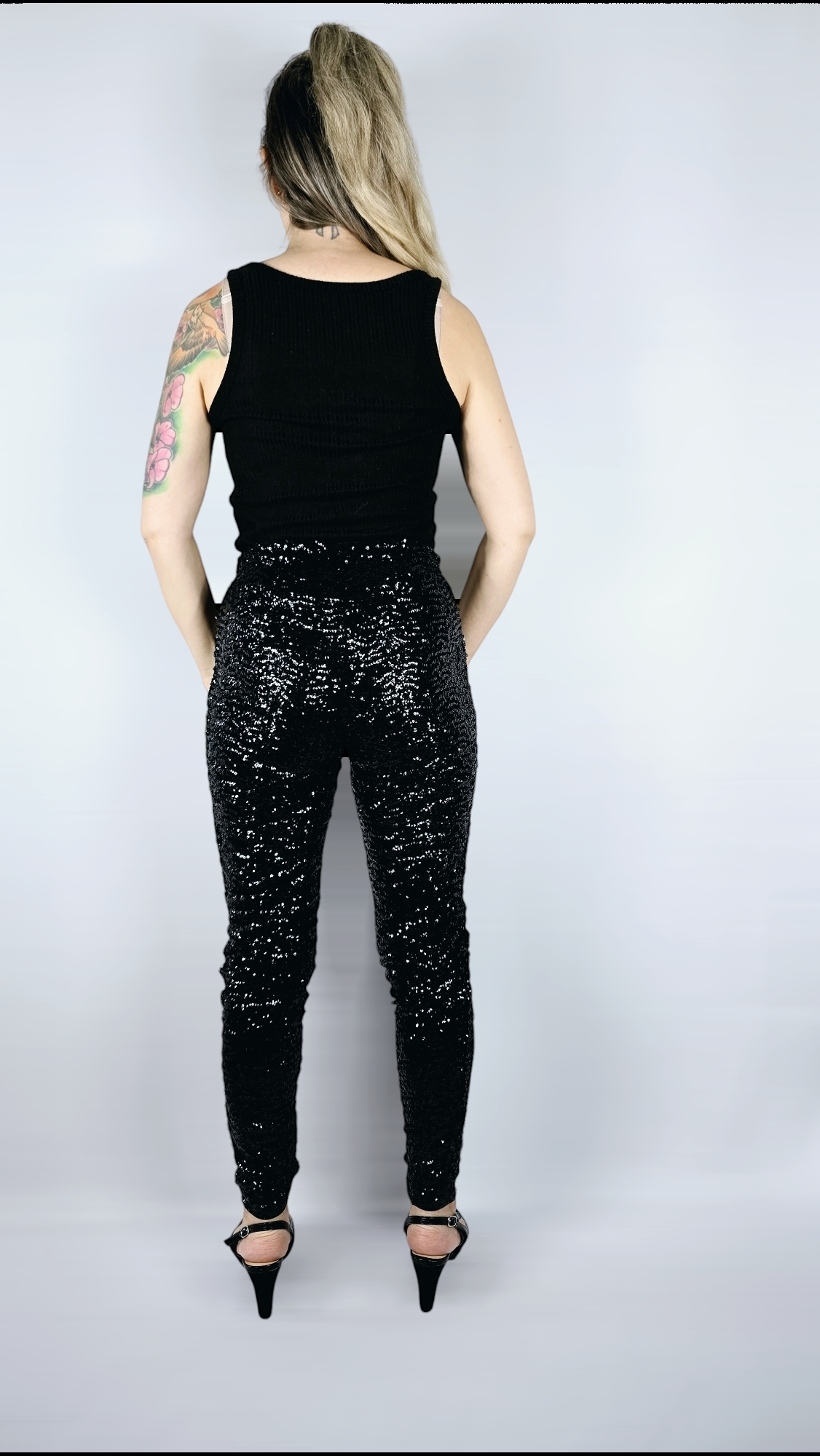 Byxor med paljetter, Svart, S