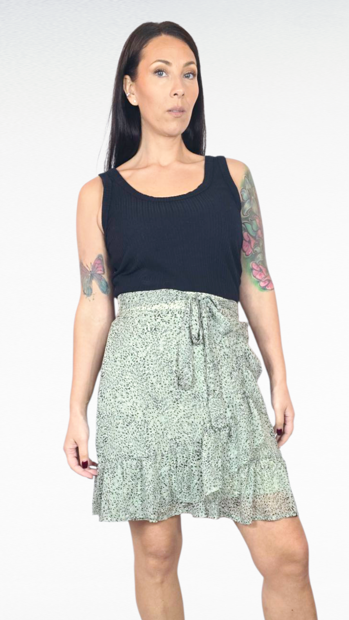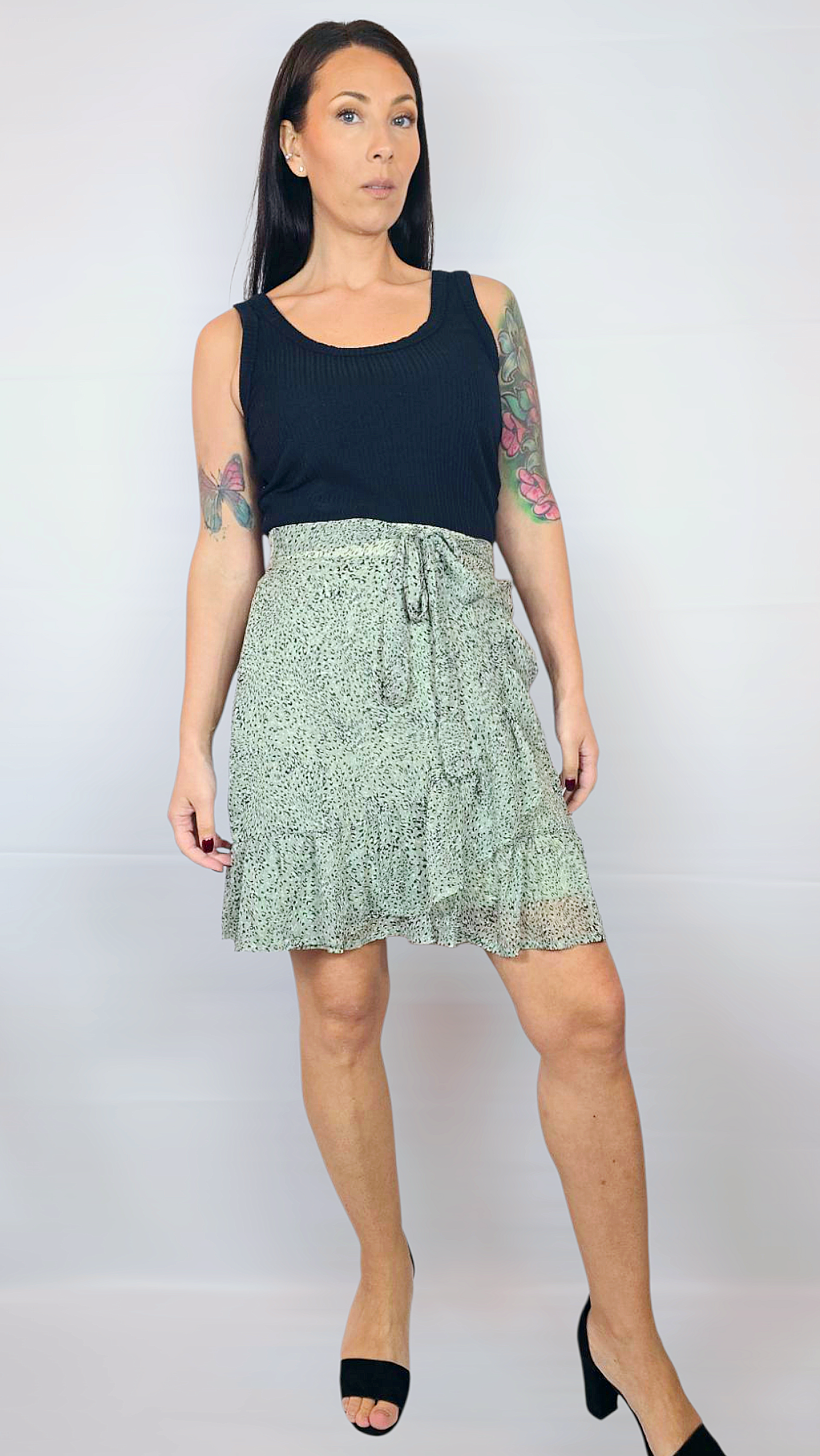 Kjol, Grön/Svart/Vit, S