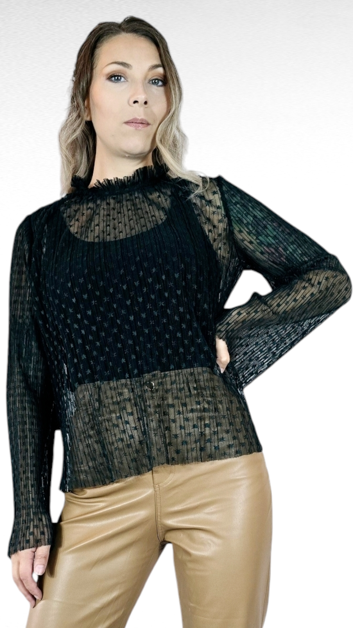 Övrigt: Blusen är transparent och toppen under som syns på bilden ingår inte i köpet